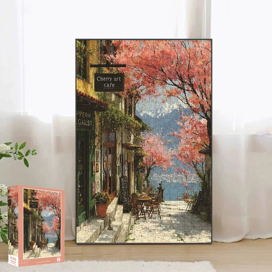 Puzzle Café Cerisier en Fleurs - Paysage Printanier - 1100 Pièces